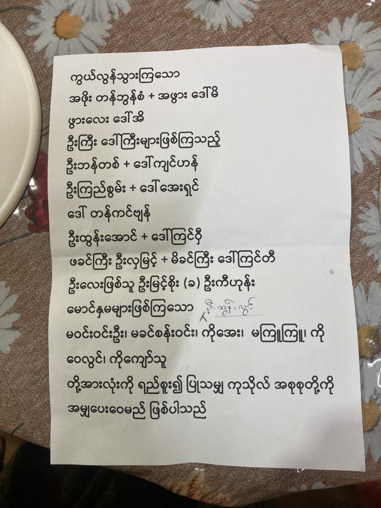 (၁၅-၂-၂၀၂၆) အသင်းဘဏ္ဍရေးမှူး ကိုမြင့်အေး အသင်းအကျိုးတော်ဆောင်ချုပ် မတင်မေခိုင် မိသားစုမှ အလှူတော်ငွေ ၁၀-သိန်းကျပ်ကျပ်တိတိလှူဒါန်းပါသည်။